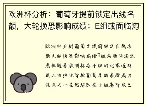 随着欧洲杯各小组的比赛逐渐进入白热化阶段,葡萄牙的表现成为焦点之一。虽然球队在小组赛阶段已经提前锁定了出线名额,但这也意味着葡萄牙可能会在接下来的比赛中进行大规模轮换,挑战和风险并存。而与此同时,E组的情况则更为复杂,多支队伍可能面临淘汰危机,竞争异常激烈。本文将详细分析葡萄牙的现状以及E组的动态,探讨大轮换对葡萄牙成绩的潜在影响,以及E组的出线形势。